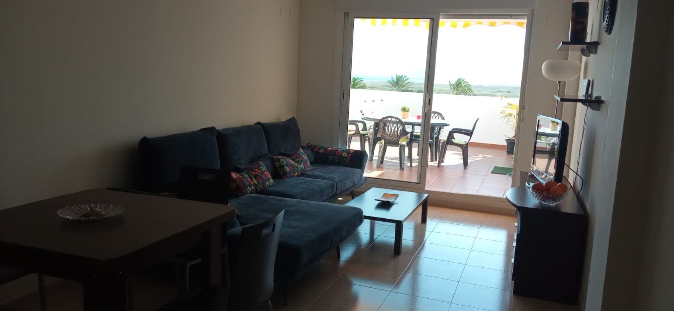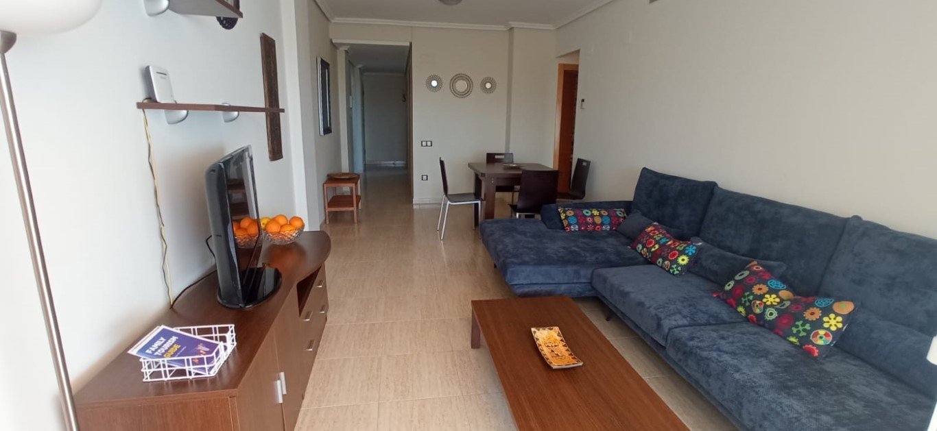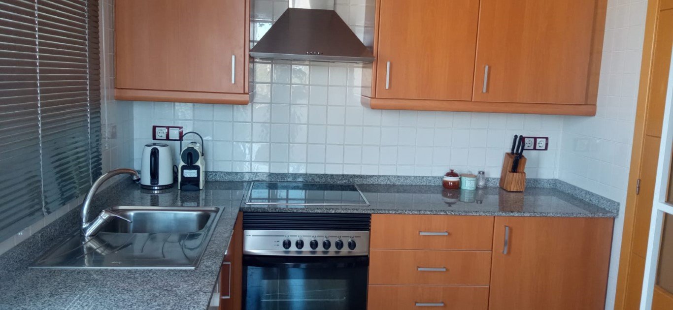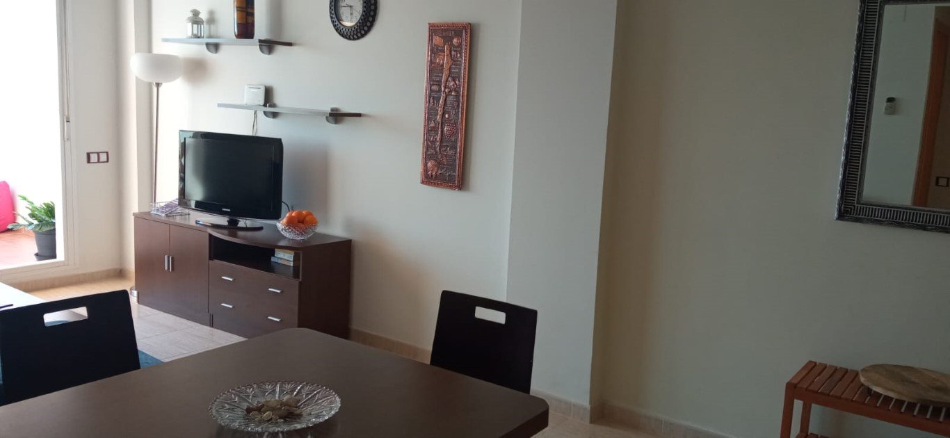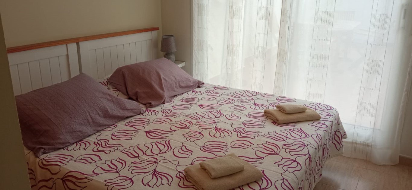 2 habitaciones, (1 Matrimonio – 1 de 2 camas), salón con (sofá cama 1 plazas), 2 baños, cocina equipada con electrodomésticos y enseres de cocina, galería con lavadora. 1 plaza de garaje. Aire acondicionado y calefacción, por conductos en toda la vivienda