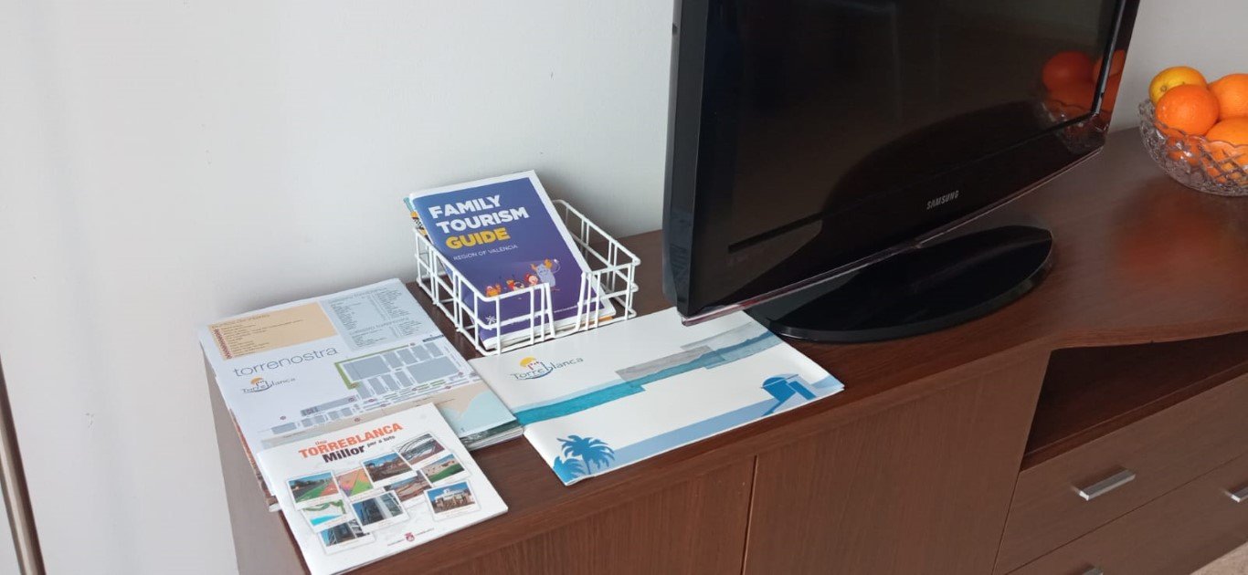 Una extensa playa de arena fina (muy poco masificada) con todos los servicios de restaurantes, cafeterías, tiendas y supermercado cerca del apartamento.